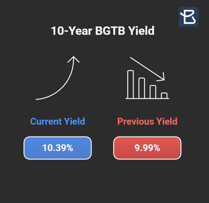 According to auction results, the cut-off yield climbed to 10.39%, up from 9.99% previously. Despite the higher rate, the government managed to raise Tk 25 billion through the issuance to help finance its budget deficit.