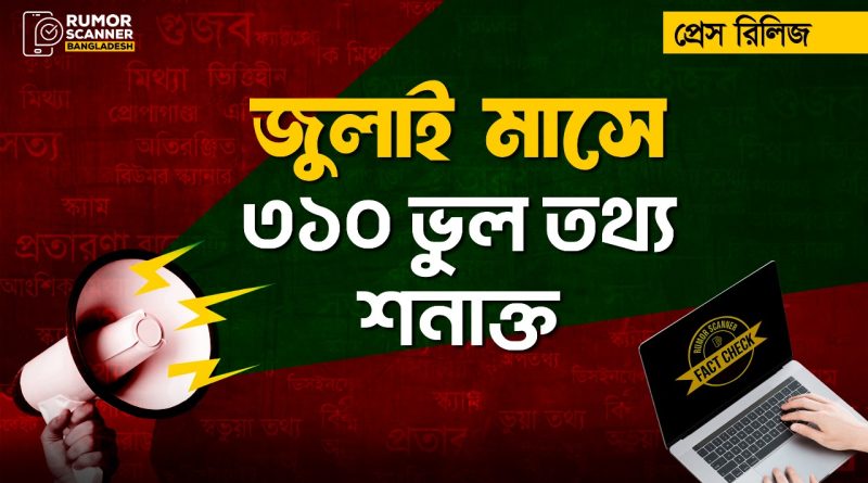 In July 2025, a total of 310 pieces of misinformation were identified across various online platforms by Rumor Scanner Bangladesh, the country’s leading fact-checking organization. The majority of the misinformation, 59% (184 instances), were related to politics, according to a monthly analysis published on the organization’s website.
