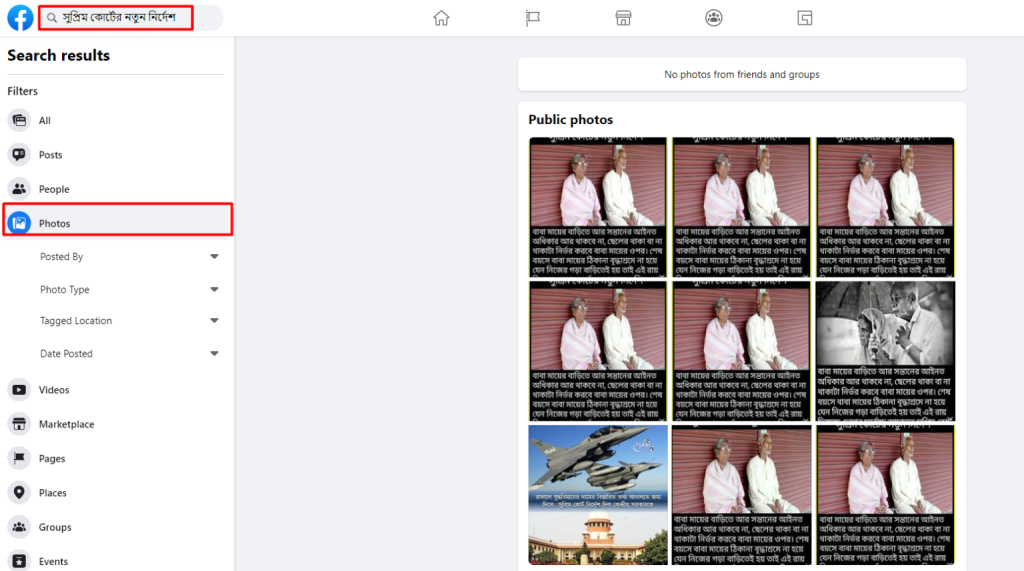 But if we take some important words from the text or caption as keywords and search, then the desired results can be found. For example, as keywords, consider “Roktojuddha Shubho himself has left this world” [names, titles, or similar unique information or words can be used].