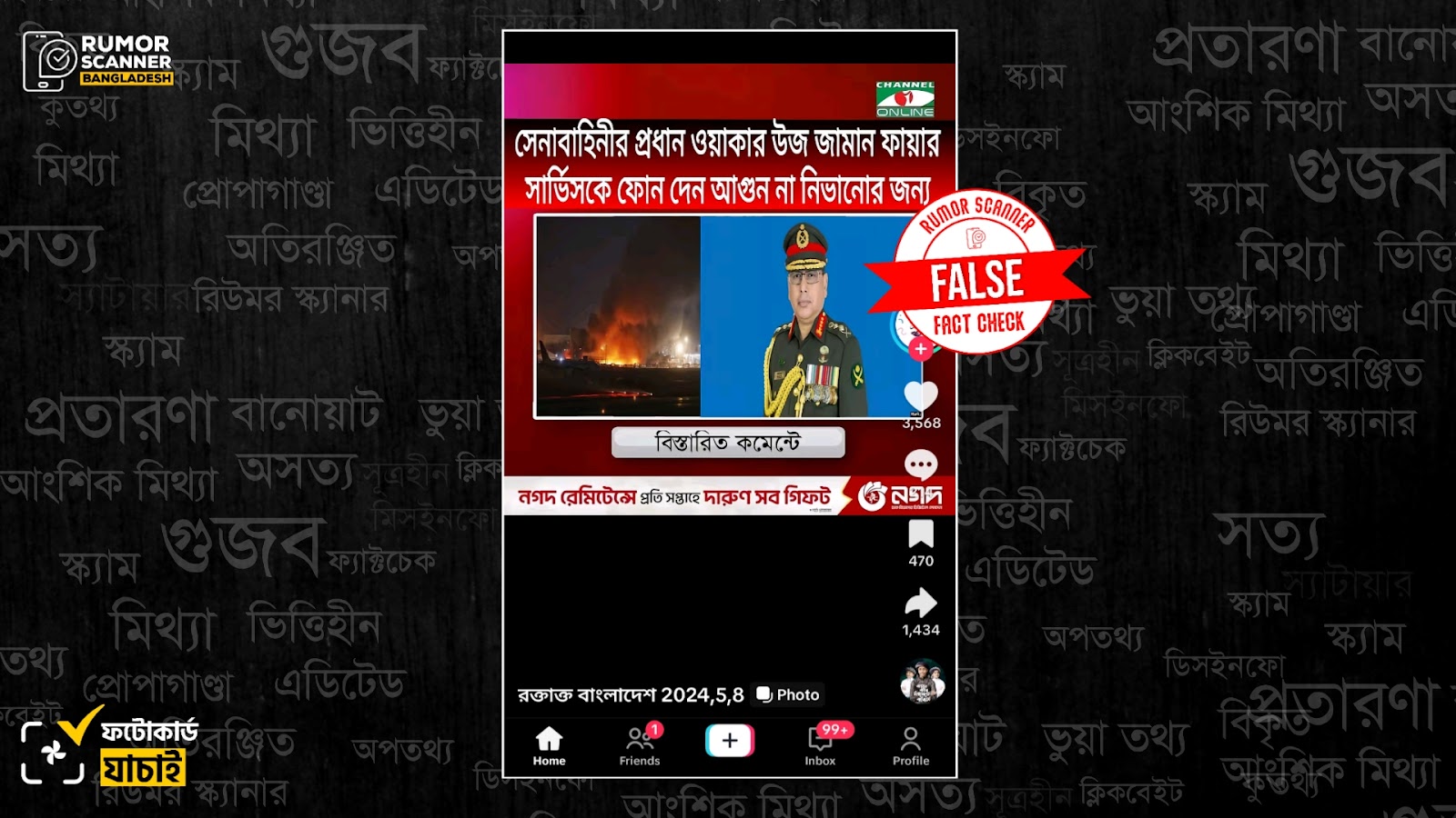 A fake photo card in the name of Channel i spread, falsely linking the Army Chief to the airport fire incident.