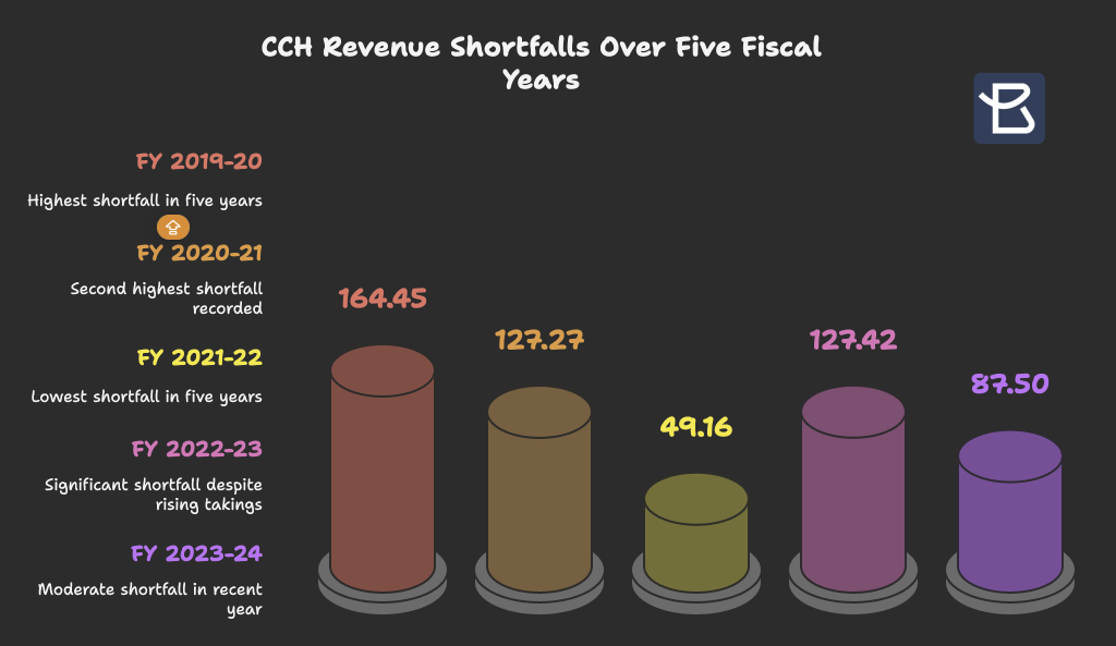 Despite rising year-on-year takings—up from Tk 614.65 billion in FY 2022-23—CCH has consistently missed its revenue goals in recent years:
