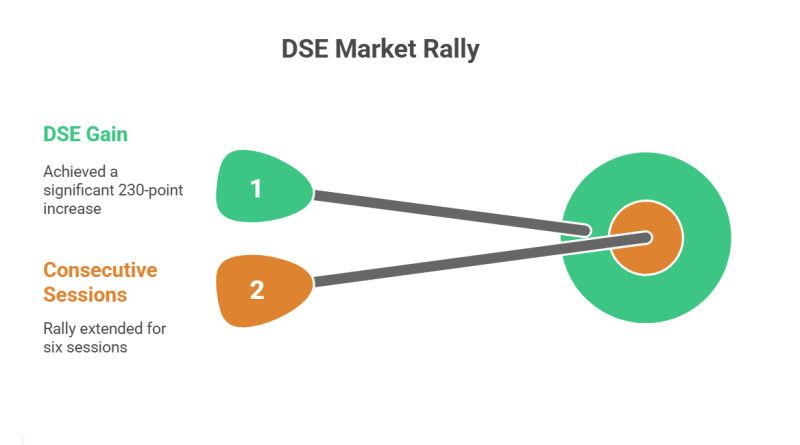 During the six-day rally, the benchmark DSEX index surged by a total of 230 points, reflecting growing investor interest and increased participation across the trading floor.