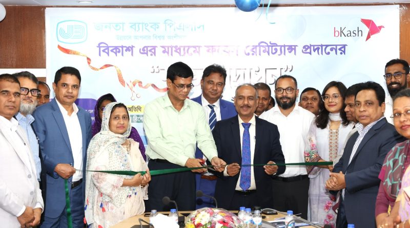 Md. Mojibur Rahman, Managing Director of Janata Bank PLC, inaugurated the remittance payment service through mobile financial service bKash on Monday, July 14, at the bank’s head office. The event was attended by the bank’s Deputy Managing Director, General Managers, and other relevant executives. From bKash, Vice President Syed Sheikh Ibne Zilani along with other officials were present.