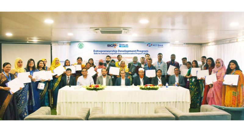 A month-long entrepreneurship development training program concluded in Mymensingh, jointly organized by Bangladesh Bank and NCC Bank PLC under the Skills for Industry Competitiveness and Innovation Programme (SICIP). The initiative, implemented by the Finance Division of the Ministry of Finance with ADB funding, aimed to build business capacity and expand access to finance for aspiring entrepreneurs.