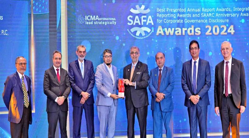 Shahjalal Islami Bank PLC has won an award in the Private Sector Banks category from the South Asian Federation of Accountants (SAFA) for the Best Presented Annual Report 2024.